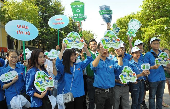 Các bạn đoàn viên thanh niên tham gia phong trào chống rác thải nhựa tại Lễ ra quân