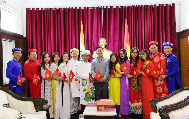 Đoàn đại biểu thanh niên Việt Nam diện kiến Đại sứ Phạm Sanh Châu tại Ấn Độ