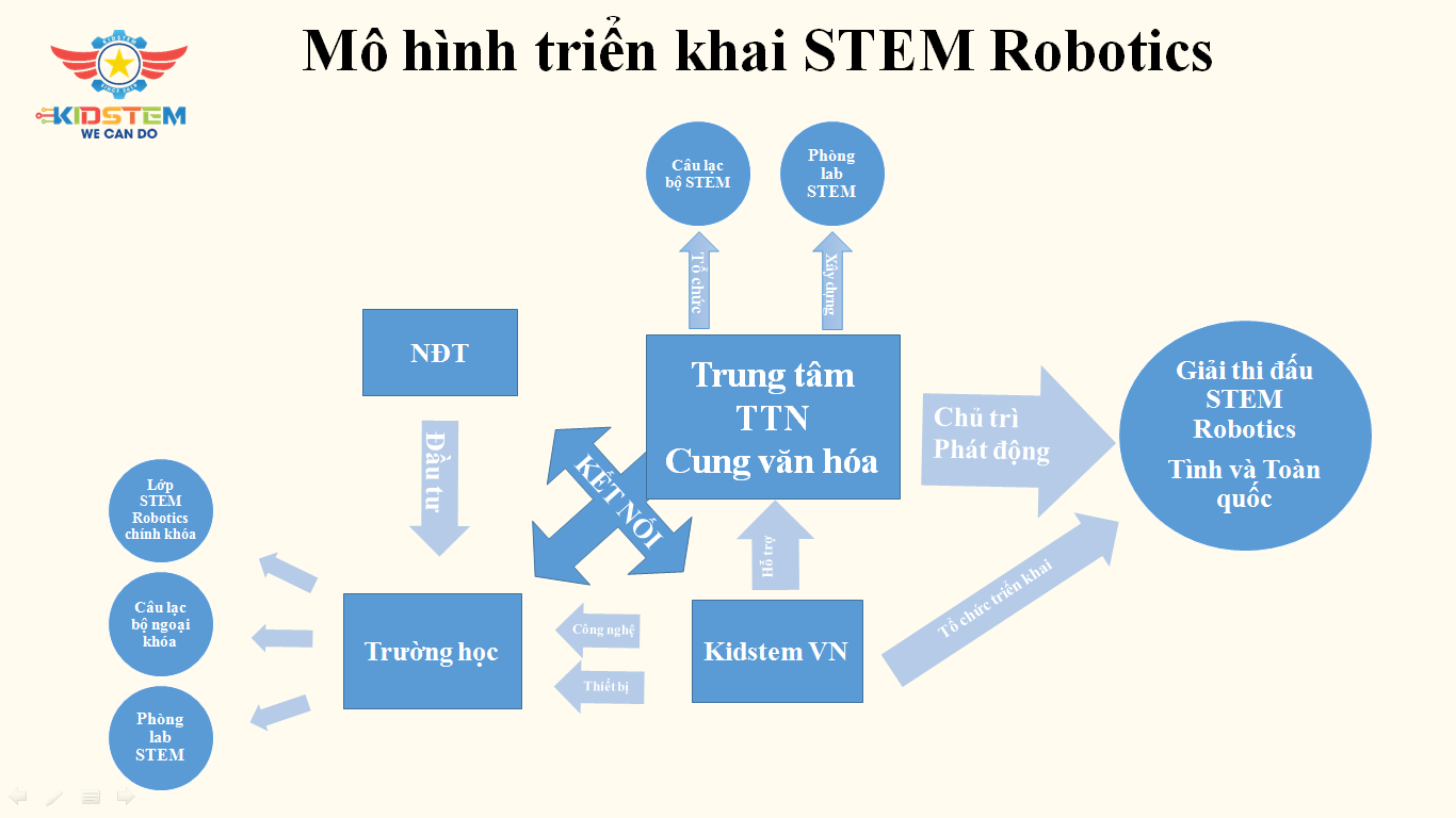 Để triển khai, xây dựng và phát triển các mô hình giáo dục Stem, các trung tâm Thanh thiếu nhi, cung văn hóa, trường học tại các địa có vai trò hết sức quan trọng trong việc tổ chức các hoạt động như: Phát động phong trào, quảng bá và tổ chức các giải thi đấu, ngày hội STEM cổ vũ cho phong trào đưa STEM tới Thanh thiếu niên. Tạo ra một sân chơi bổ ích dành cho thanh thiếu nhi, các câu lạc bộ, đội, nhóm học thuật, sáng tạo, nghiên cứu khoa học tại tất cả các trường Tiểu học, Trung học cơ sở, Trung học phổ thông trên địa bàn các tỉnh, thành phố để học sinh không chỉ được tham quan và tiếp cận với nhiều điều mới mẻ mà còn được phát huy khả năng tư duy sáng tạo của mình, góp phần đẩy mạnh phong trào học tập sáng tạo của thanh thiếu nhi. Kết nối các nguồn lực, công nghệ và giải pháp với Nhà trường và Nhà đầu tư; tuyên truyền, xây dựng các mô hình CLB, phòng Lab STEM cho thanh thiếu niên trải nghiệm, học tập trong mô hình giáo dục STEM một cách hiệu quả nhất./.