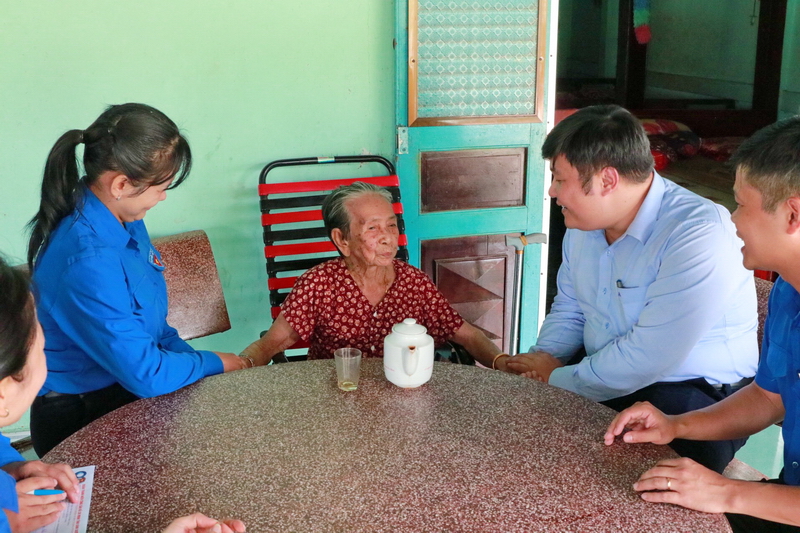 Trong chương trình, Đoàn đã đến thăm và tặng quà Mẹ Việt Nam Anh hùng Nguyễn Thị Huân trên địa bàn xã Định Hiệp.