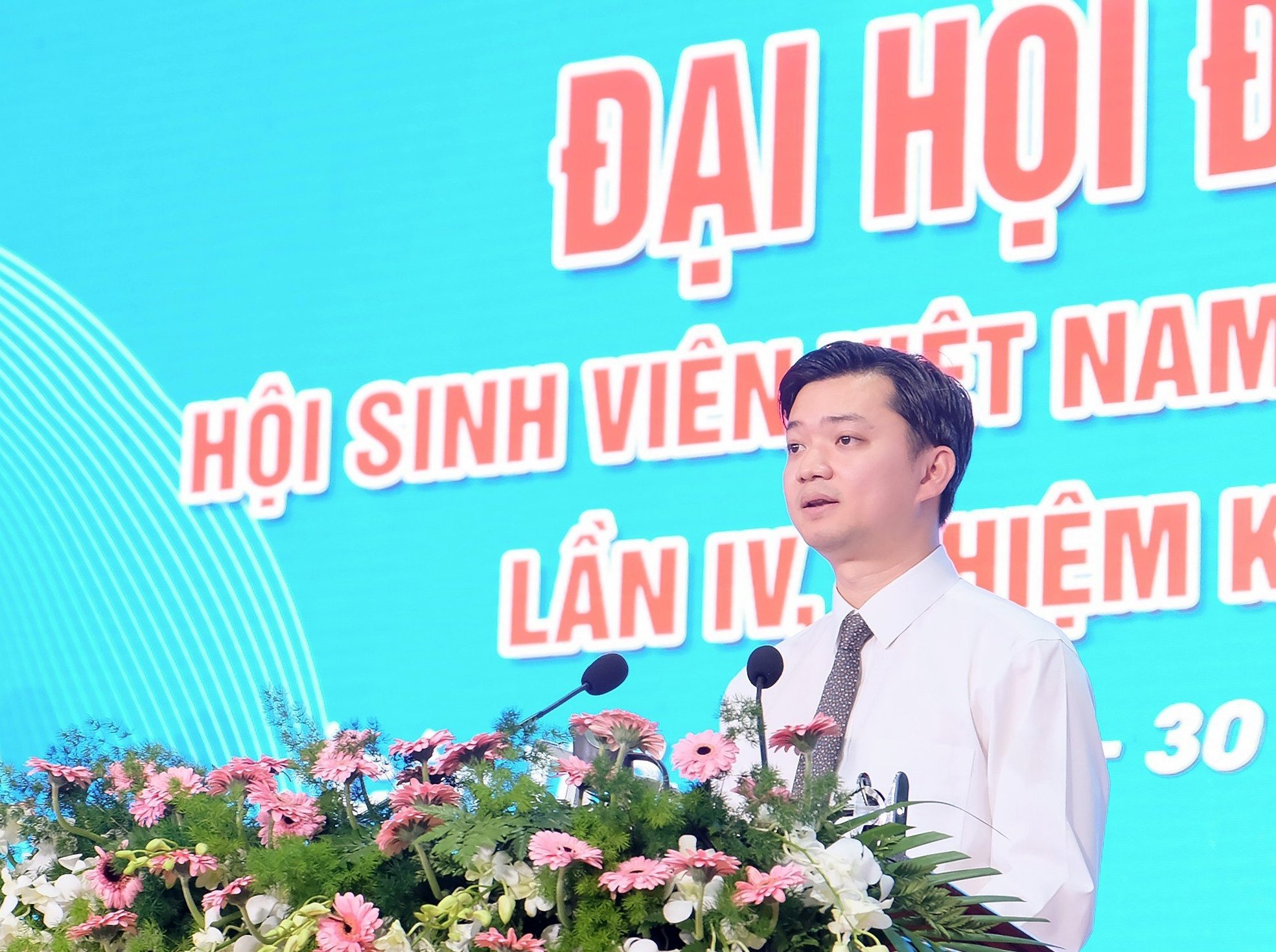 Đồng chí Nguyễn Minh Triết, Bí thư Trung ương Đoàn, Chủ tịch Hội Sinh viên Việt Nam phát biểu tại đại Hội. Ảnh - Kim Hai
