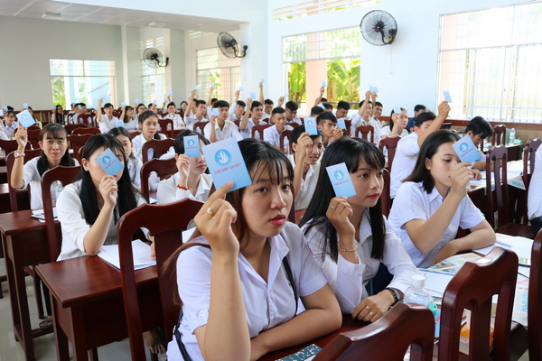Đại biểu biểu quyết Nghị quyết Đại hội Đại biểu Hội Sinh viên Việt Nam Trường Cao đẳng Kiên Giang nhiệm kỳ 2018-2020.