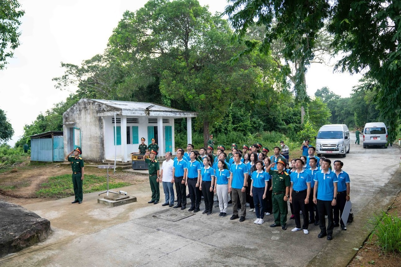 Tại buổi chào cờ sáng nay, đoàn công tác đã thăm hỏi, động viên các chiến sĩ làm nhiệm vụ tại đảo Thổ Châu, và gửi tặng lá cờ Tổ quốc đến Trung đoàn, thể hiện tinh thần của thế hệ trẻ trong việc giữ gìn biên giới biển, đảo.