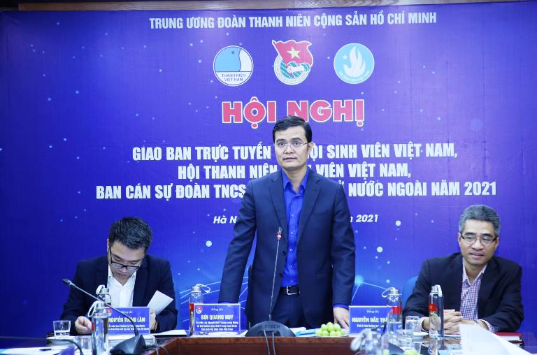 Đồng chí Bùi Quang Huy Bí thư Thường trực T.Ư Đoàn, Chủ tịch T.Ư Hội Sinh viên Việt Nam chủ trì Hội nghị giao ban trực tuyến với các Hội Sinh viên Việt Nam, Hội Thanh niên Sinh viên Việt Nam, Ban Cán sự Đoàn TNCS Hồ Chí Minh ở nước ngoài năm 2021