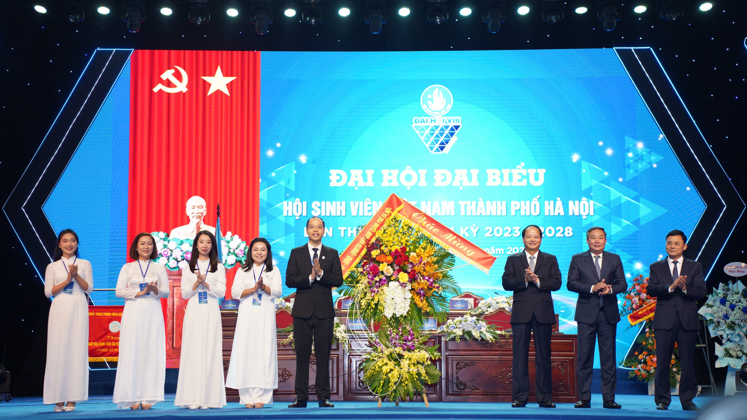 Các đồng chí Lãnh đạo tặng hoa Ban chấp hành Hội Sinh viên TP Hà Nội lần thứ VIII, nhiệm kỳ 2023 – 2028 tại Đại hội