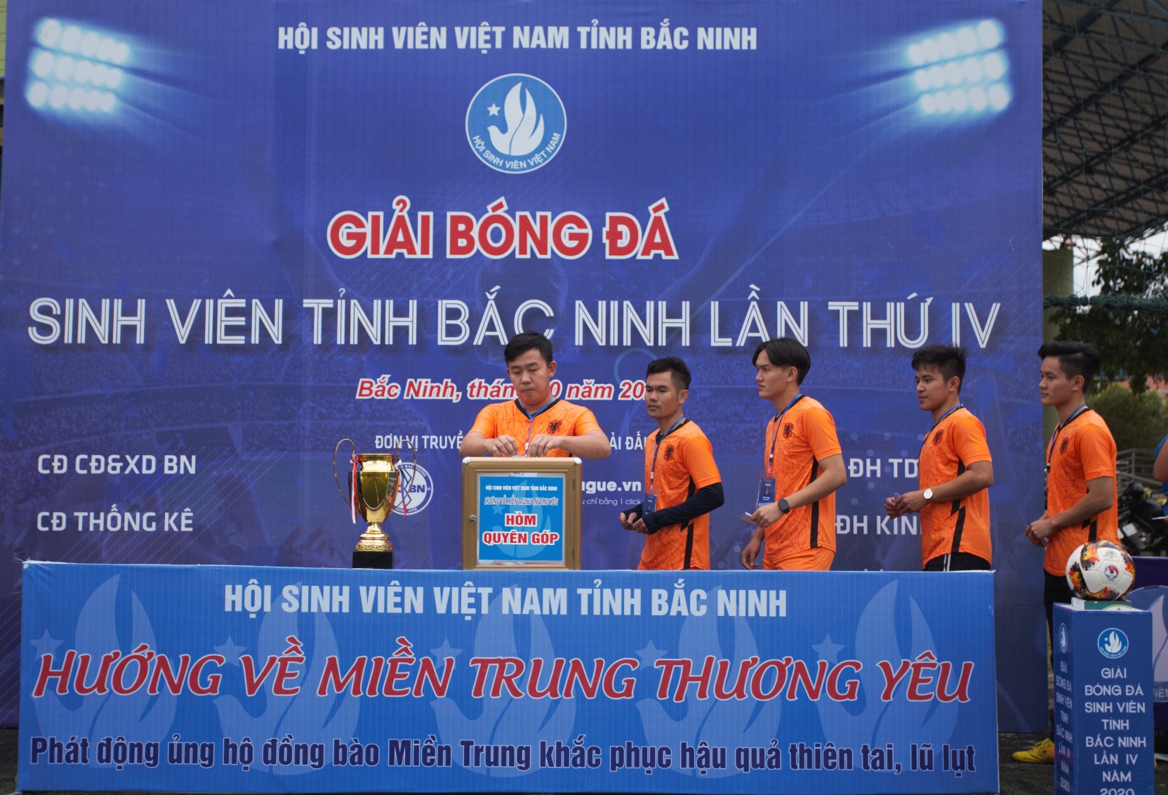 Với tinh thần cả nước hướng về đồng bào miền Trung với tất cả tình yêu thương, trách nhiệm để cùng hy vọng đồng bào nơi đây vơi dần khó khăn, sớm trở lại cuộc sống bình thường. Hưởng ứng lời kêu gọi ủng hộ và tinh thần cùng cả nước hướng về miền Trung ruột thịt, tại giải bóng đá Sinh viên tỉnh lần thứ IV – 2020, Ban thư ký Hội Sinh viên tỉnh đã phát đi lời kêu gọi và tổ chức quyên góp ủng hộ đồng bào miền Trung tại các trường Đại học, Cao đẳng và trong các trận thi đấu của giải.