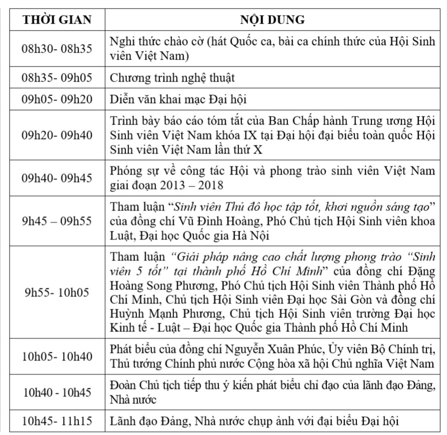8h32: Lễ khai mạc chính thức Đại hội đại biểu toàn quốc Hội Sinh viên Việt Nam lần thứ X, nhiệm kỳ 2018 - 2023 được bắt đầu.