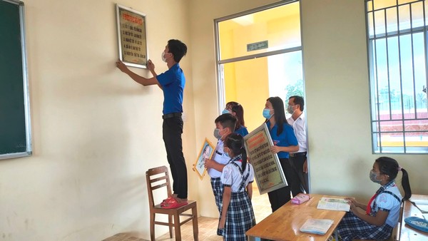 Để đảm bảo 100% phòng học có ảnh Bác Hồ và 5 điều Bác Hồ dạy theo sự chỉ đạo của Trung ương Đoàn về việc triển khai thực hiện Công trình Vì đàn em thân yêu “Lớp em treo ảnh Bác Hồ”, Hội đồng Đội tỉnh cùng Hội đồng Đội các huyện, thị xã, thành phố tranh thủ vận động các nguồn lực cả về kinh phí và ngày công lao động. Qua đó, các đơn vị tổ chức thực hiện việc treo ảnh Bác Hồ và 5 điều Bác Hồ dạy ở các phòng học chưa có. Đến nay, 2.080 phòng học đã được trang bị đủ, đạt 100% lớp học đều có ảnh Bác Hồ và 5 điều Bác Hồ dạy.