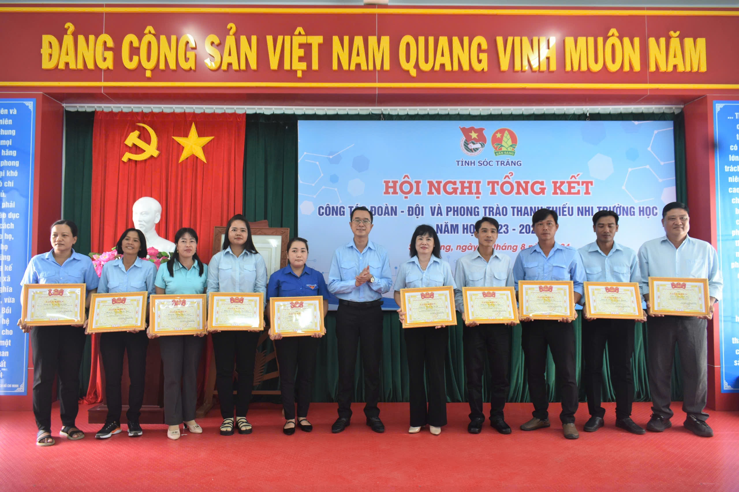 Dịp này, Tỉnh đoàn trao Bằng khen cho 04 đơn vị có thành tích xuất sắc trong công tác Đội và phong trào thiếu nhi, năm học 2023 - 2024; trao Bằng khen cho 01 học sinh đạt giải khuyến khích Vòng Chung kết và Giấy khen cho 06 học sinh đạt giải cao tại Vòng Khu vực Hội thi Tin học trẻ toàn quốc lần thứ XXX, năm 2024; Hội đồng Đội tỉnh trao Giấy khen cho 11 đơn vị có thành tích tiêu biểu, đóng góp tích cực cho công tác Đội và phong trào thiếu nhi năm học 2023 - 2024; trao Giấy khen cho 05 tập thể và 11 cá nhân tiêu biểu phong trào “Thiếu nhi Sóc Trăng tiết kiệm làm theo Bác”.
