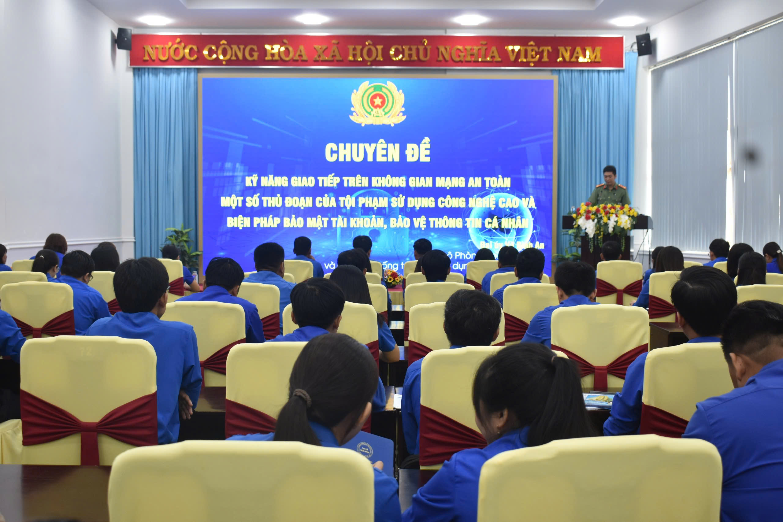 Ngay sau buổi lễ khai mạc, các học viên được báo cáo viên đến từ Phòng An ninh mạng và phòng, chống tội phạm sử dụng công nghệ cao, Công an tỉnh Sóc Trăng triển khai chuyên đề kỹ năng giao tiếp trên không gian mạng an toàn; một số thủ đoạn của tội phạm sử dụng công nghệ cao và cách phòng tránh cho cán bộ đoàn viên, thanh niên giai đoạn hiện nay.