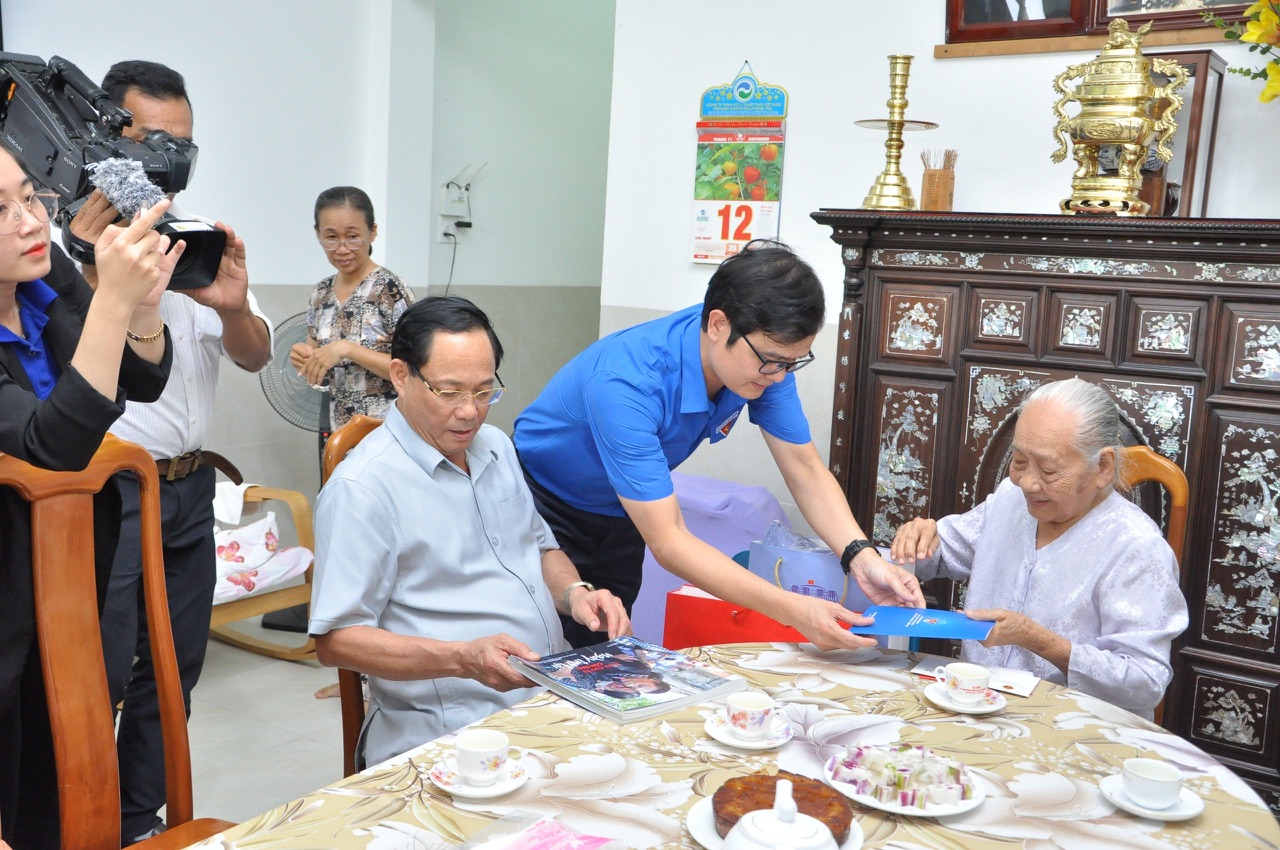 Tại nơi đến thăm, Thượng tướng Trần Quang Phương - Phó Chủ tịch Quốc hội đã ân cần thăm hỏi sức khỏe Mẹ, bày tỏ lòng tri ân sâu sắc đối với những hy sinh to lớn của Mẹ trong sự nghiệp đấu tranh giải phóng dân tộc, đồng thời động viên Mẹ tiếp tục sống vui, sống khoẻ cùng con cháu.