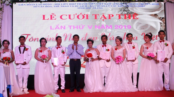 Phát biểu tại lễ cưới, ông Ngô Thái Chân - Chủ tịch Liên đoàn Lao động tỉnh chúc mừng hạnh phúc các cặp đôi và nhấn mạnh, lễ cưới tập thể này là món quà của các ngành chức năng, các nhà tài trợ, các mạnh thường quân gửi tặng đến các cặp đôi, hy vọng rằng đây là một kỷ niệm đẹp trong cuộc đời các cặp đôi trẻ, đồng thời cũng là hành trang, là động lực để các đôi vợ chồng trẻ chung sức, đồng tâm để cùng nhau xây dựng cuộc sống ấm no và hạnh phúc.