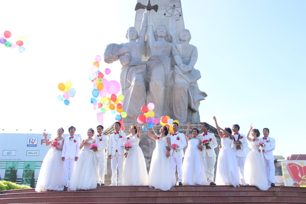 Lễ cưới tập thể năm nay có 07 cặp đôi là công nhân viên chức, người lao động có hoàn cảnh khó khăn tham gia. Trước khi lễ cưới chính thức diễn ra, 07 đôi uyên ương đến tượng đài trung tâm thành phố Sóc Trăng chụp ảnh, thả bóng bay gửi gắm niềm hạnh phúc. Sau đó, đoàn xe hoa đưa các cặp đôi diễu hành qua các tuyến đường trung tâm thành phố trước khi đến Trung tâm Hội nghị - Tiệc cưới Toàn Thịnh để thực hiện các nghi lễ chính của lễ cưới tập thể.