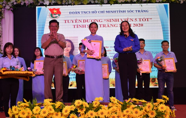 Ghi nhận những thành tích đóng góp trong các phong trào học sinh - sinh viên của các em trong thời gian qua, dịp này Ban Thường vụ Tỉnh đoàn tuyên dương và trao giấy chứng nhận danh hiệu “Sinh viên 5 tốt” cho 30 sinh viên, danh hiệu “Học sinh 3 rèn luyện” cho 22 em và danh hiệu “Học sinh 3 tốt” cho 70 em. Đây là những gương tiêu biểu đại diện cho trên 20.000 học sinh - sinh viên toàn tỉnh, các em là những bông hoa tươi thắm trong vườn hoa người tốt, việc tốt, gương sáng về học tập, rèn luyện.
