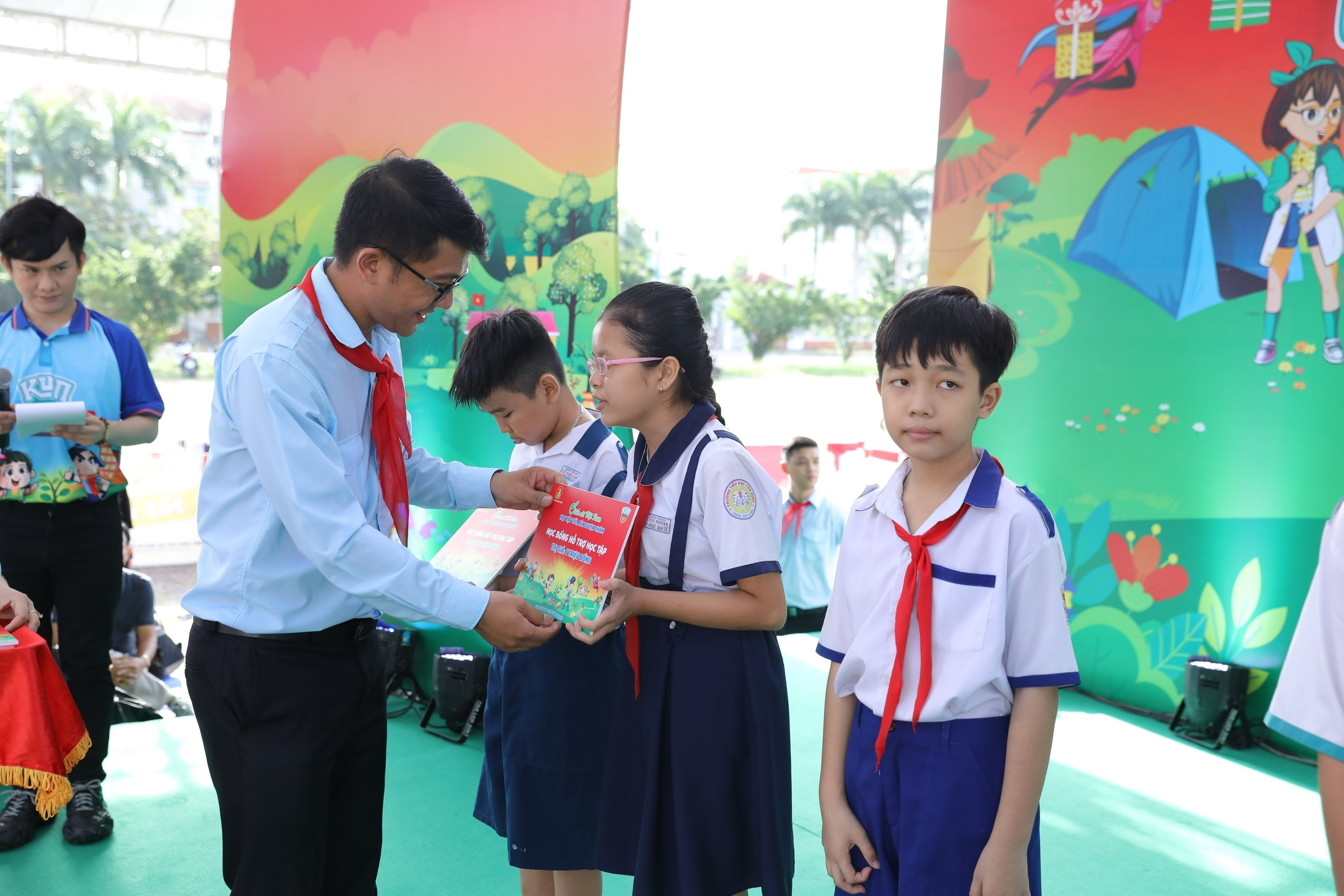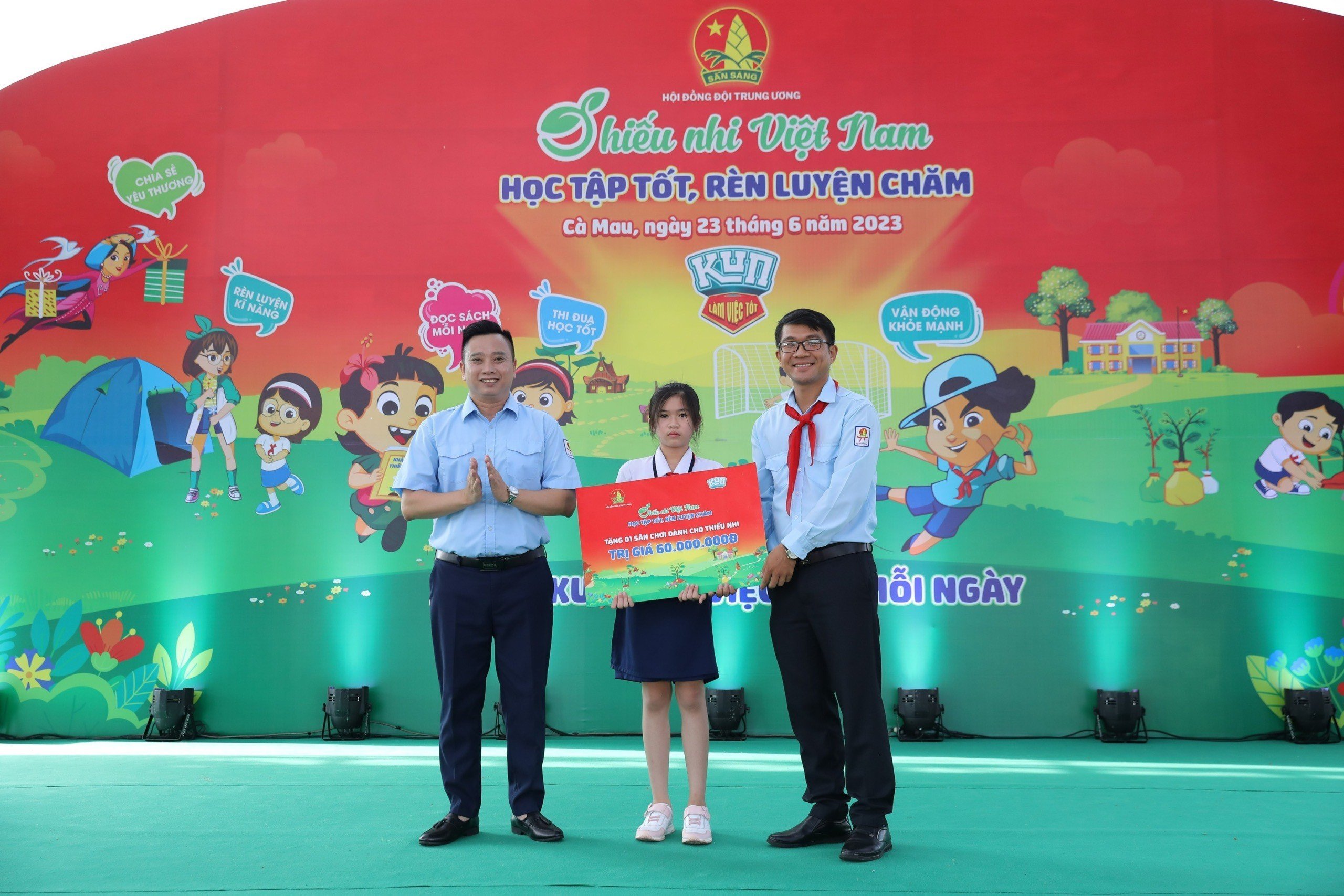 Đồng thời, Hội đồng Đội Trung ương đã trao tặng công trình sân chơi thiếu nhi tại liên đội Trường TH Quảng Phú và liên đội trường TH An Xuyên với tổng giá trị 60 triệu đồng nguồn kinh phí thực hiện do Công ty Cổ phần Sữa quốc tế (IDP) hỗ trợ từ hoạt động đi bộ đồng hành của các em thiếu nhi tỉnh nhà. Cũng nhân dịp này, Ban Tổ chức cũng đã tiến hành trao tặng 20 suất học bổng, mỗi suất trị giá 01 triệu đồng cùng quà tặng cho các em thiếu nhi vượt khó vươn lên trong học tập.