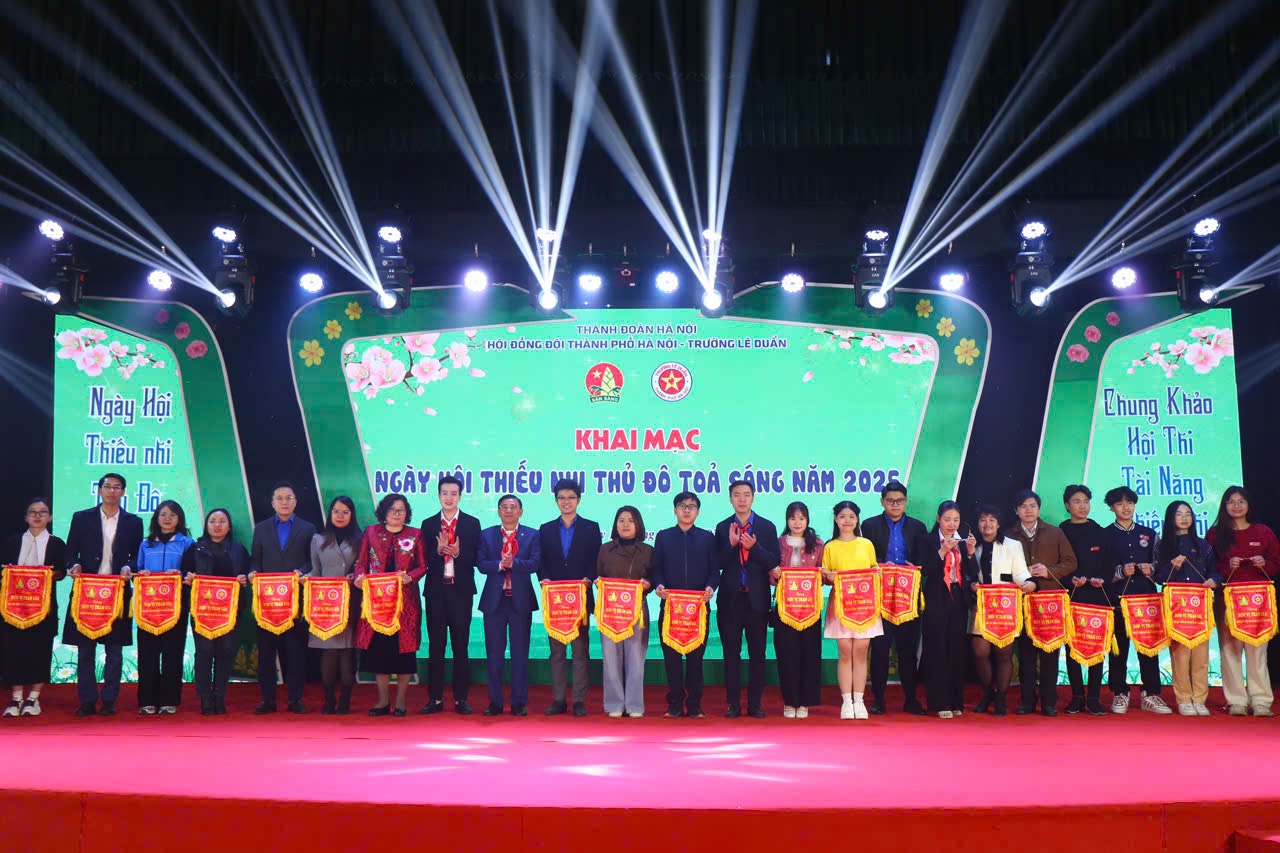 Ban tổ chức Ngày hội “Thiếu nhi Thủ đô tỏa sáng” năm 2025 trao cờ cho các đơn vị tham gia ngày hội