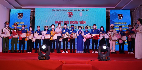 Cũng tại chương trình sáng hôm nay, Ban Thường vụ Tỉnh Đoàn đã tổ chức trao giải thưởng cho các bạn thí sinh xuất sắc đã đạt giải trong Cuộc thi trực tuyến tìm hiểu Lịch sử Đoàn TNCS Hồ Chí Minh và phong trào thanh niên tỉnh Thừa Thiên Huế, giai đoạn 1930 – 2020 và Cuộc thi tìm hiểu lịch sử, văn hóa dân tộc “Tự hào Việt Nam” lần thứ IV, năm học 2021 - 2022 do Trung ương Đoàn TNCS Hồ Chí Minh phối hợp với Bộ GD-ĐT tổ chức.