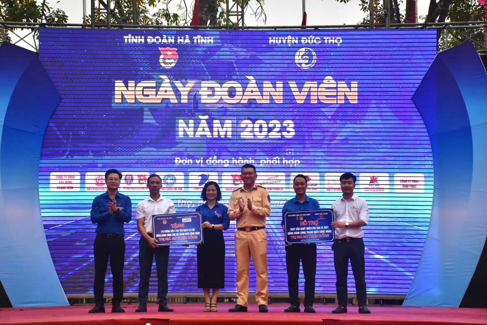 Chương trình đã tái hiện những kết quả nổi bật của công tác Đoàn, Hội toàn tỉnh trong năm vừa qua thông qua Tiểu phẩm “Táo Thanh niên; tuyên dương 12 gương thanh niên công nhân tiêu biểu trên địa bàn huyện Đức Thọ; trao giải cho các đội bóng đá nam và kéo co nữ xuất sắc trong Ngày hội thể thao thanh niên công nhân năm 2023. Đồng thời tại chương trình, Ban tổ chức cũng tặng 170 thùng sữa trị giá 40 triệu đồng và biểu trưng hỗ trợ thay dầu nhớt miễn phí cho 200 xe máy trị giá 20 triệu đồng cho Huyện đoàn Đức Thọ; trao tặng 40 suất quà, mỗi suất quà gồm 1 triệu đồng tiền mặt và 1 thùng sữa cho con em thanh niên công nhân vượt khó trong học tập; trao tặng 60 suất quà, mỗi suất quà gồm 500 ngàn đồng tiền mặt và 1 thùng sữa cho thanh niên công nhân có hoàn cảnh khó khăn tại các doanh nghiệp thuộc huyện Đức Thọ.