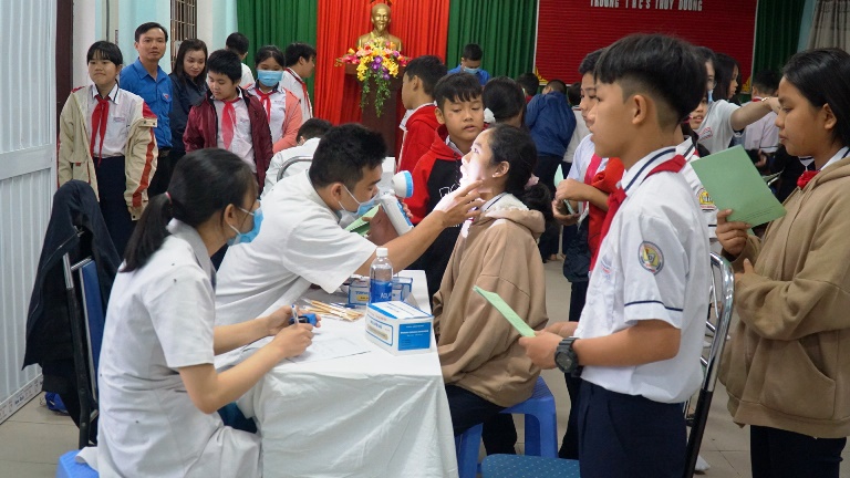 Cũng trong dịp này, Hội thầy thuốc trẻ tỉnh đã triển khai chương trình khám chữa bệnh học đường cho toàn bộ học sinh trường THCS Thủy Dương.