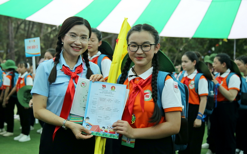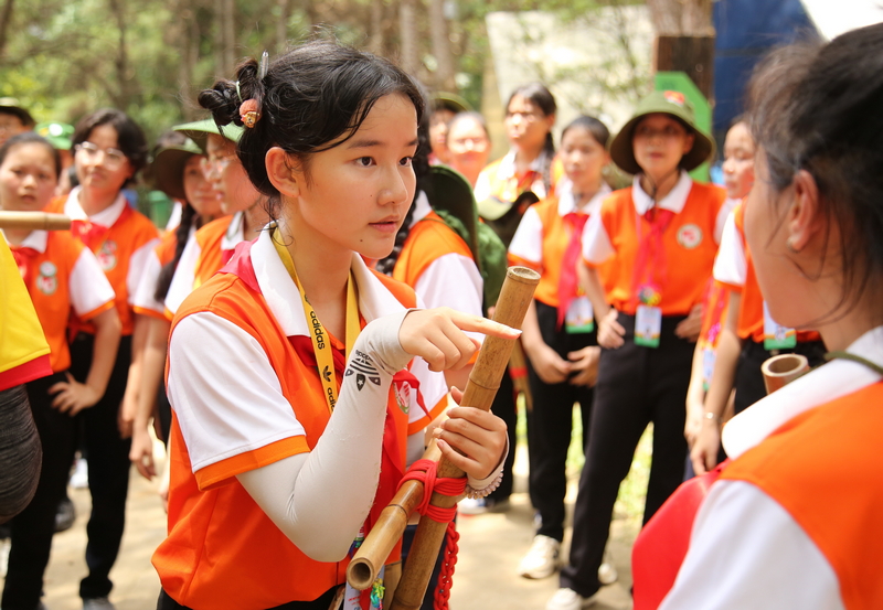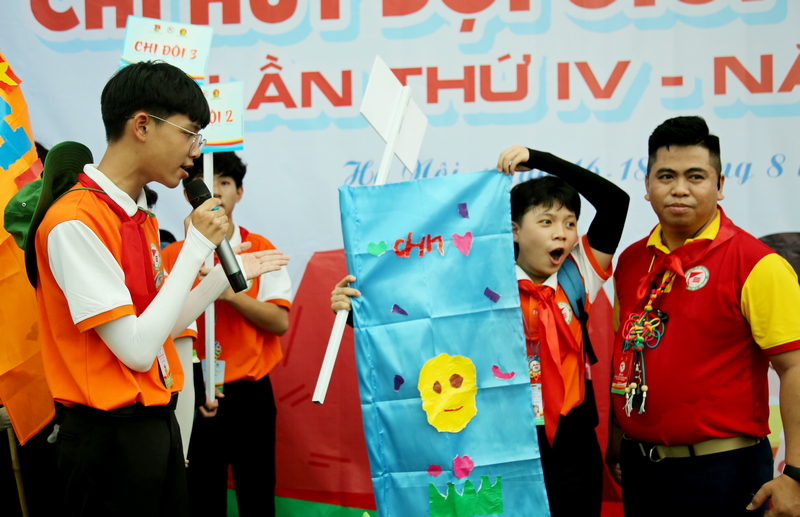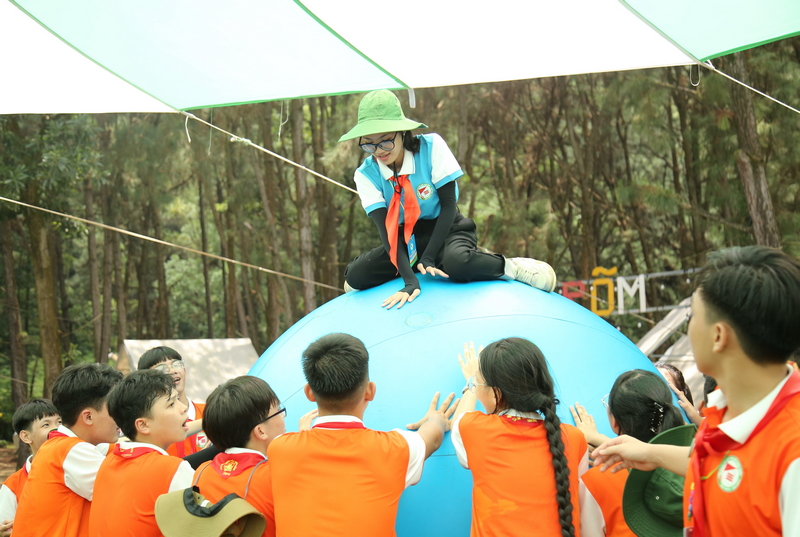 Bên cạnh đó, các đại biểu thiếu nhi và anh, chị Tổng phụ trách còn tham gia nhiều trò chơi thử thách như: xếp hình, làm bánh trôi nước, đi hài khổng lồ, đua ngựa, gậy hơi, bóng hơi, dựng lều tốc độ, mắc võng 2 tầng, làm tranh lá, lọc nước, nhóm bếp lửa...