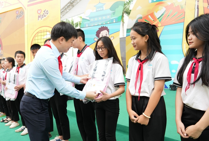 Đồng thời, Hội đồng Đội Trung ương và Thương hiệu Lof Malto - Công ty Cổ phần Sữa Quốc tế đã trao tặng 60 suất học bổng, mỗi suất trị giá 01 triệu đồng và 01 bộ sản phẩm quà tặng cho 60 em thiếu nhi có hoàn cảnh khó khăn của tỉnh Hà Tĩnh.