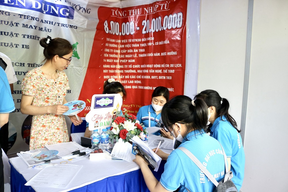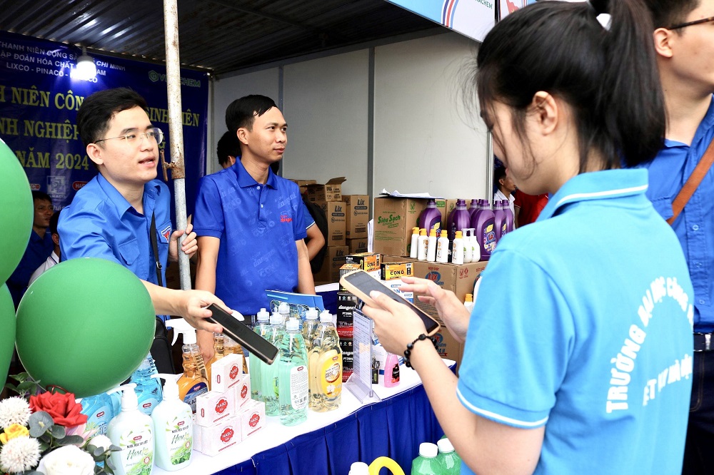 Thanh niên công nhân, sinh viên trải nghiệm mua sắm tại các gian hàng và tìm hiểu Ngày hội việc làm Sinh viên
