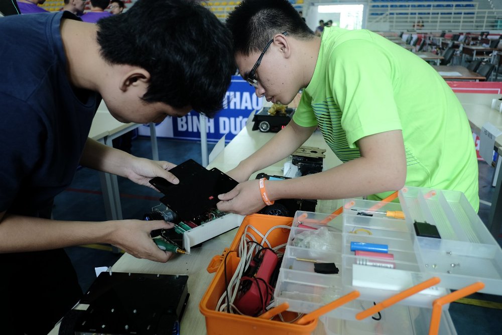 Các thí sinh lắp ráp sản phẩm trước giờ thi đấu |