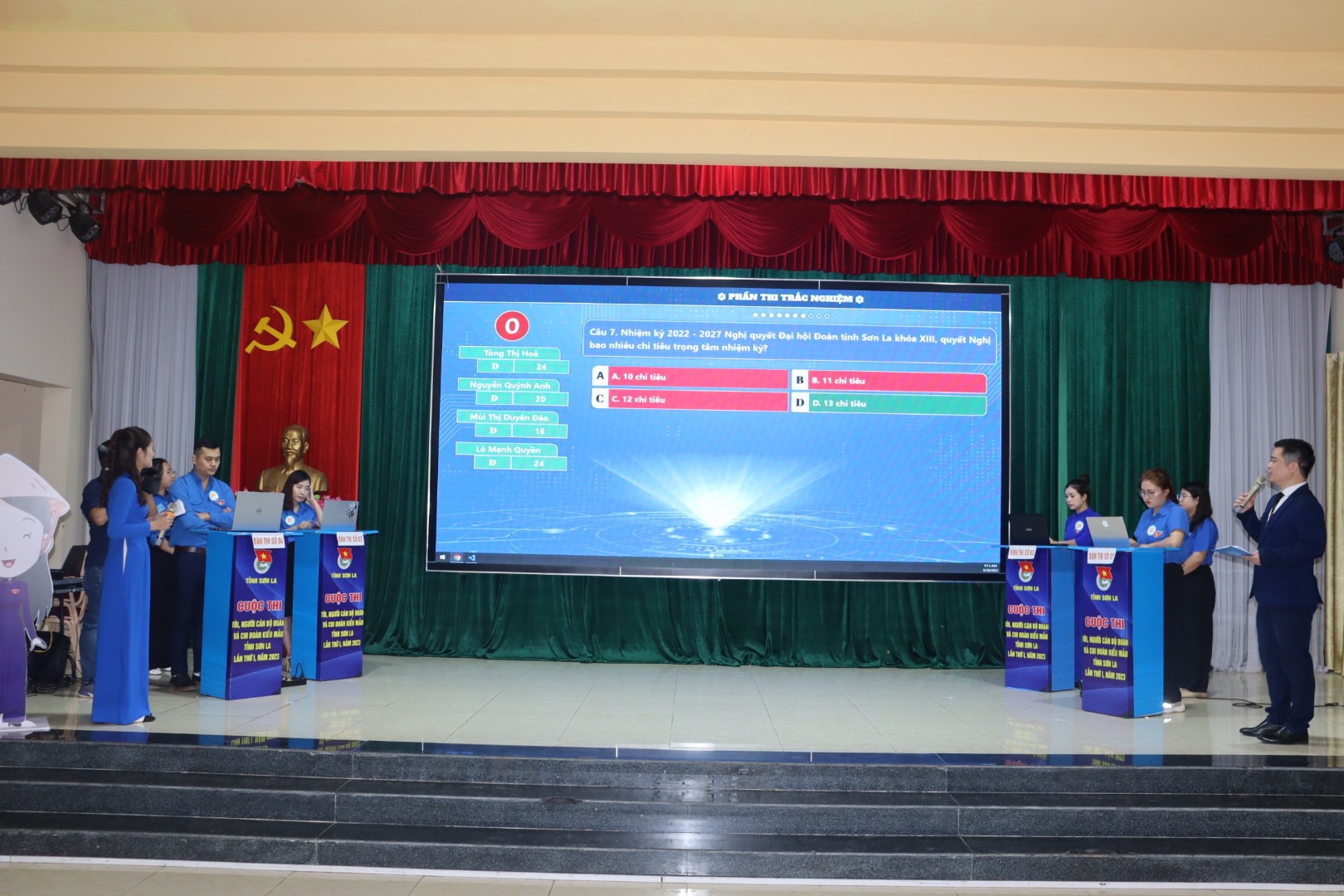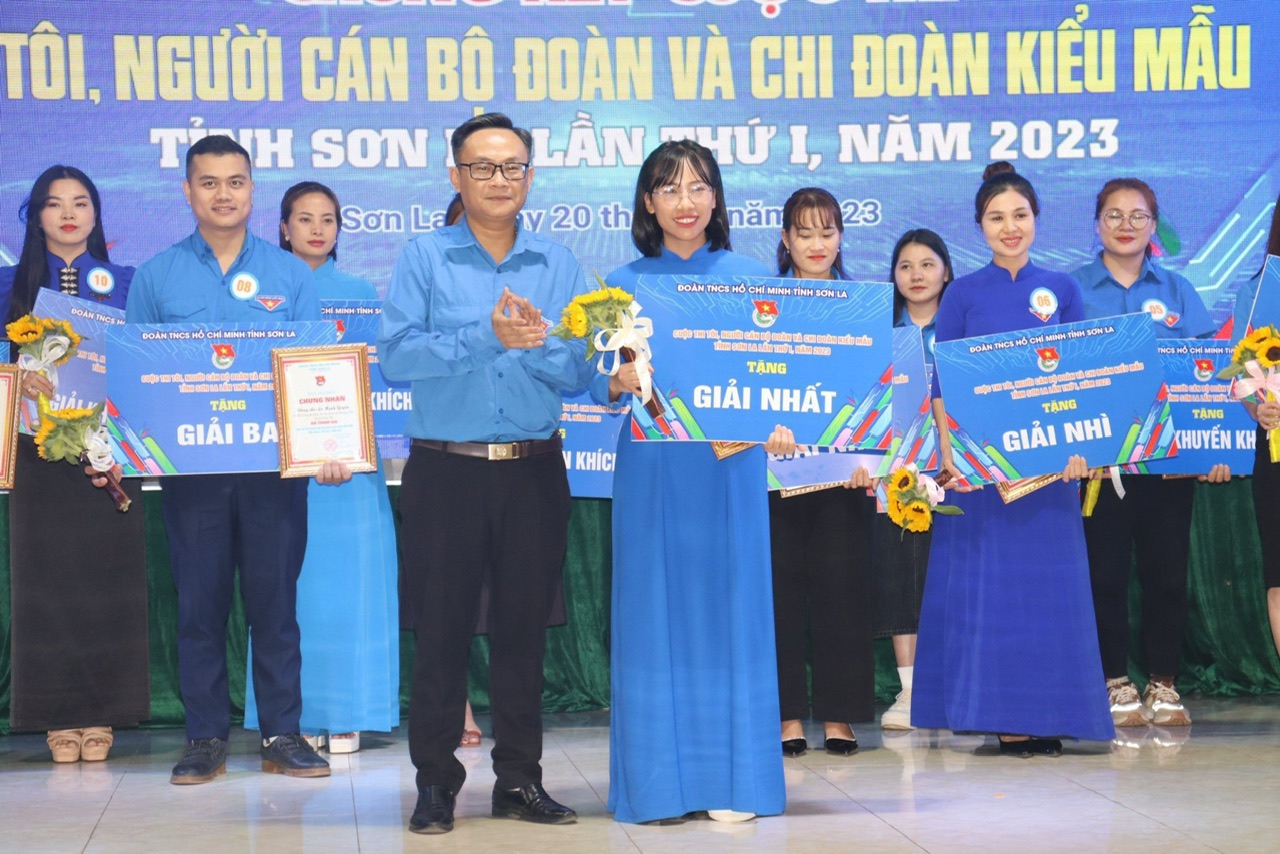 Kết thúc Cuộc thi Ban Tổ chức cuộc thi quyết định trao giấy chứng nhận cho 16 thí sinh đã hoàn thành nội dung Cuộc thi “Tôi, người cán bộ đoàn và Chi đoàn kiểu mẫu” tỉnh Sơn La lần thứ I, năm 2023; trao 01 Giải Nhất, 02 Giải Nhì, 03 Giải Ba, 10 Giải Khuyến khích, 02 Giải phụ cho thí sinh có phần thi Nhạy bén - Bản lĩnh xuất sắc nhất và thí sinh có phần thi Ý tưởng sáng kiến xuất sắc nhất, 02 giải tập thể cho đơn vị có nhiều thí sinh tham gia Chung kết cấp tỉnh nhất và đơn vị có nhiều thí sinh đạt giải tại Chung kết cấp tỉnh nhất.