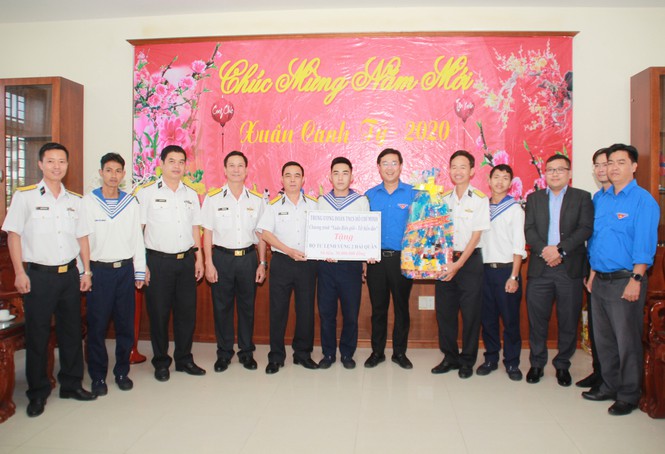 Tại đây, đoàn công tác T.Ư Đoàn, Tỉnh Đoàn Bà Rịa – Vũng Tàu, đại diện đơn vị đồng hành đã trao tặng 20 suất học bổng Vừ A Dính cho 20 con em cán bộ, chiến sỹ Hải quân; tặng bộ thiết bị y tế; tặng quà và lì xì đầu xuân đến toàn thể hơn 1.830 học sinh và cán bộ, giáo viên, nhân viên nhà trường. Dịp này, các em học sinh nhà trường cũng gửi tặng các chiến sỹ đang công tác ở các đơn vị thuộc Vùng 2 Hải quân, Nhà giàn DK1 những bức tranh, tấm thiệp xuân chứa đựng tình cảm mến thương của quân và dân nơi đất liền.