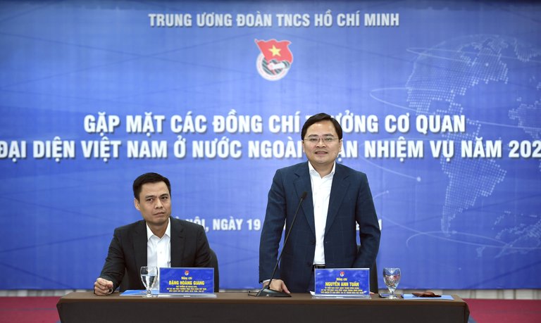 Chúng tôi cho rằng, mỗi thanh niên có thể làm đại sứ Việt Nam ở nước ngoài; kỳ vọng thanh niên đóng góp nhiều hơn cho đất nước. Bộ Ngoại giao sẵn sàng hỗ trợ để thúc đẩy sự tham gia của thanh niên vào công tác đối ngoại và hợp tác với T.Ư Đoàn để thúc đẩy công tác thanh niên Việt Nam ở nước ngoài", đồng chí Đặng Hoàng Giang khẳng định./: