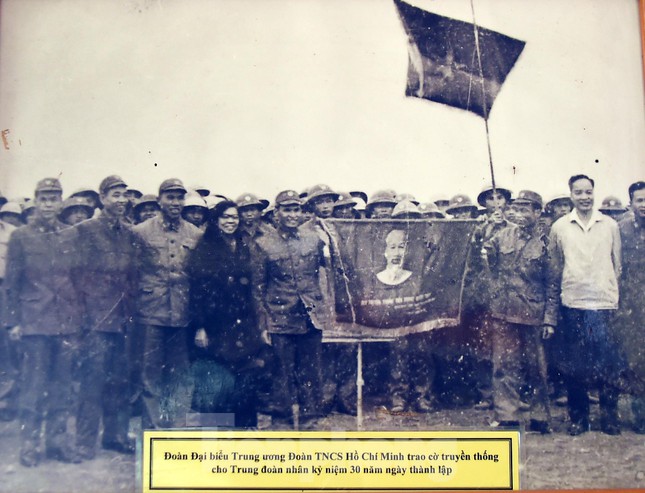 Đoàn đại biểu T.Ư Đoàn trao cờ truyền thống cho Trung đoàn nhân kỷ niệm 30 năm ngày thành lập. Ảnh chụp lại tư liệu