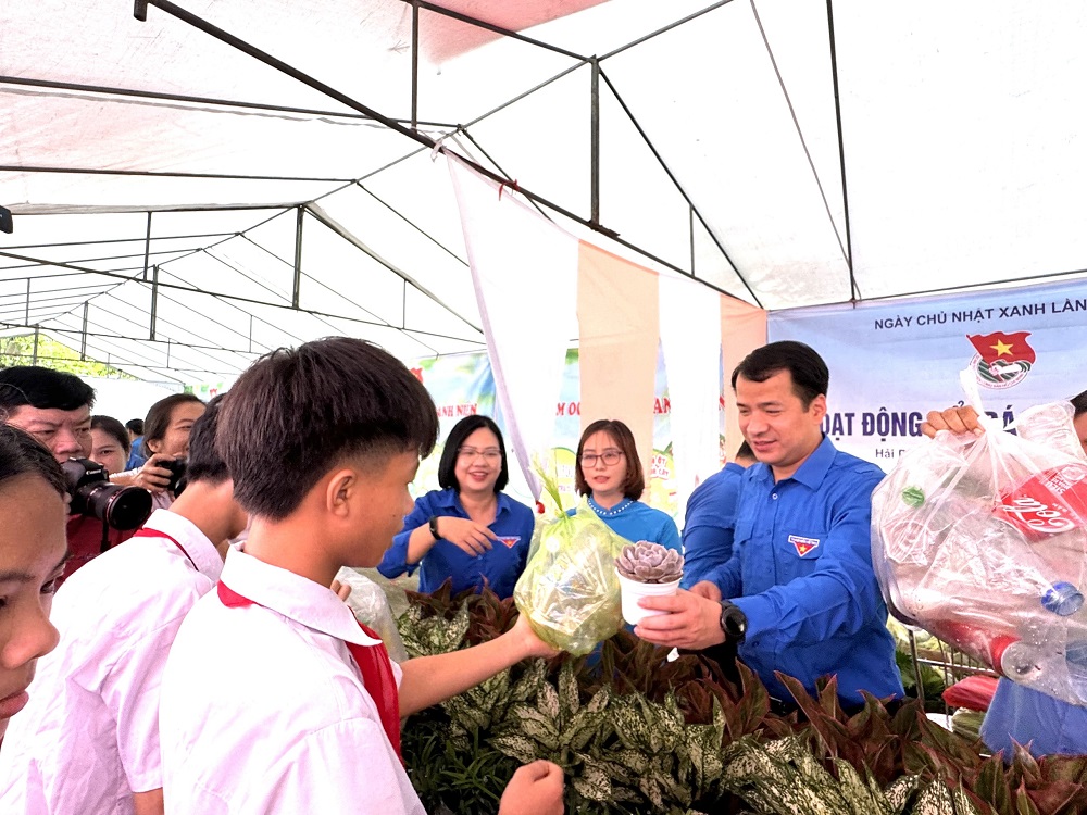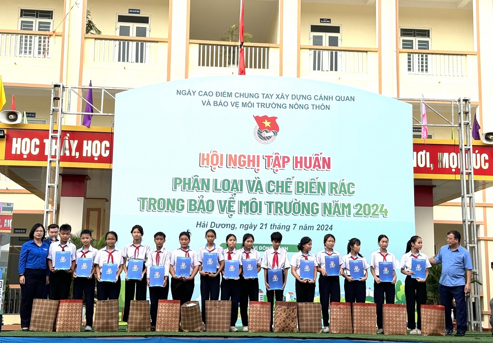 Nhân dịp này, Trung ương Đoàn cùng các đơn vị đồng hành trao tặng nguồn lực cho tỉnh đoàn Hải Dương: 02 mô hình phân loại rác tại nguồn; 02 Hàng cây thanh niên; 01 sàn nông sản trên vũ trụ ảo Metaverse; 01 mô hình Chợ dân sinh giảm thiểu rác thải nhựa và Thanh toán tiền mặt “0 đồng”; triển khai 02 gian hàng đổi rác thải nhựa lấy cây xanh; Hỗ trợ tổ chức Hội nghị tập huấn kiến thức phân loại và chế biến rác trong bảo vệ môi trường năm 2024; 30 suất quà cho thiếu nhi có hoàn cảnh khó khăn; 30 suất quà cho gia đình chính sách và gia đình cựu thanh niên xung phong; 300 đầu sách cho thư viện trường THCS xã Thăng Long.
