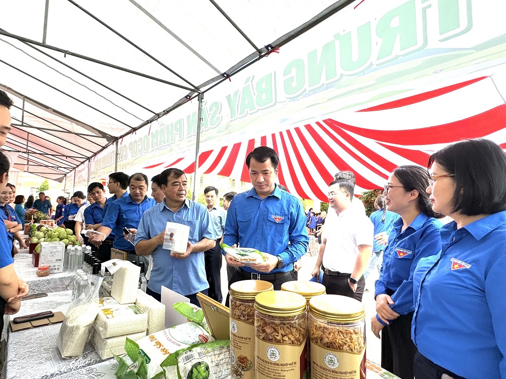 Đại biểu tham quan gian hàng triển lãm sản phẩm ocop của Thanh niên