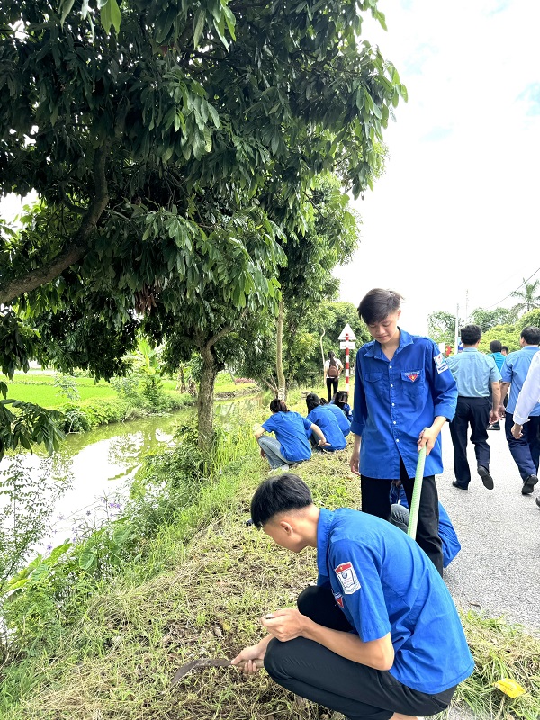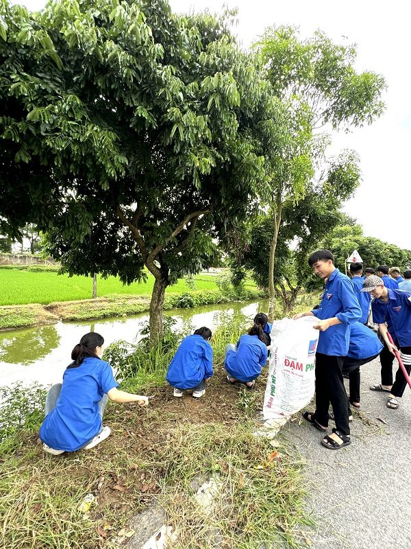 ĐVTN tham gia dọn vệ sinh môi trường trên địa bàn xã Thăng Long