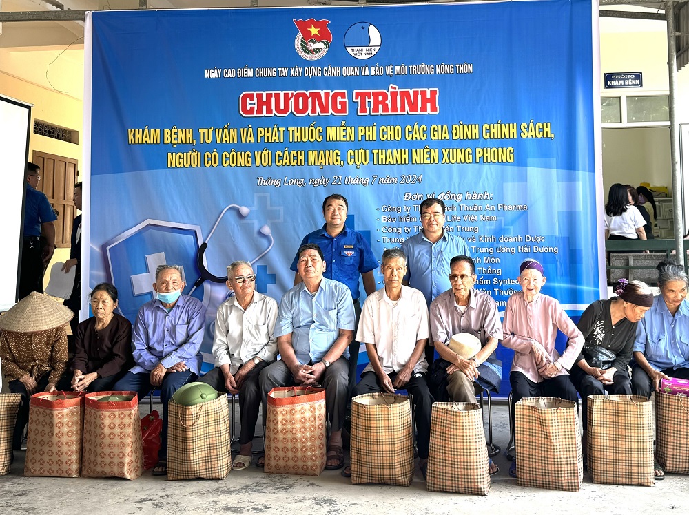 Thăm Khám và cấp phát thuốc miễn phí cho các đối tượng chính sách và tặng quà cho đối tượng gia đình chính chính sách, người có công với cách mạng, Cựu Thanh niên xung phong tại xã Thăng Long, thị xã Kinh Môn.