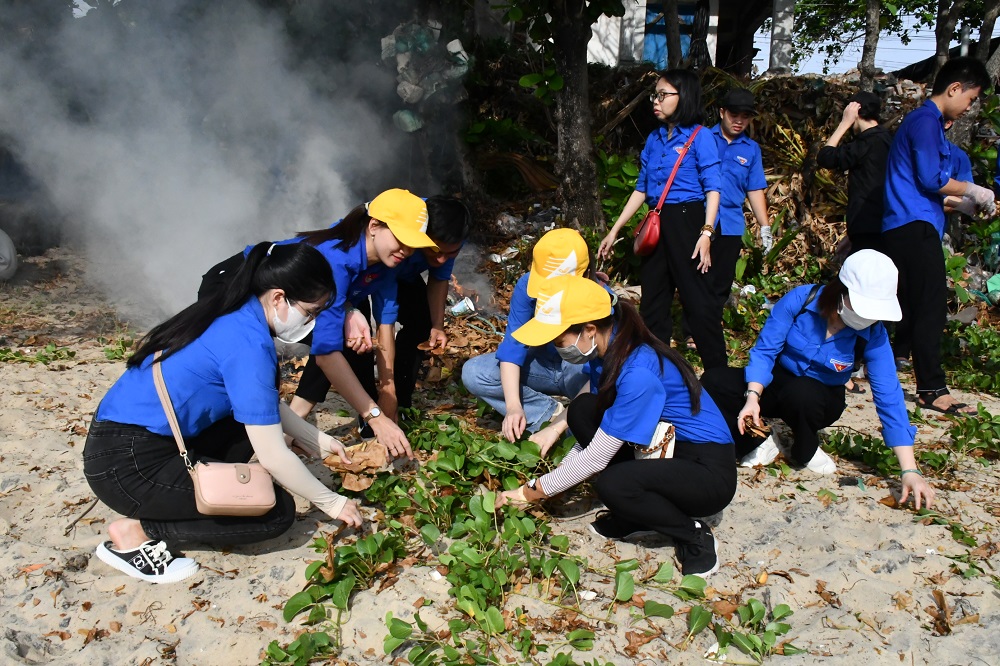 Đoàn viên thanh niên thanh gia dọn vệ sinh bãi biển xã An Hòa Hải, huyện Tuy An