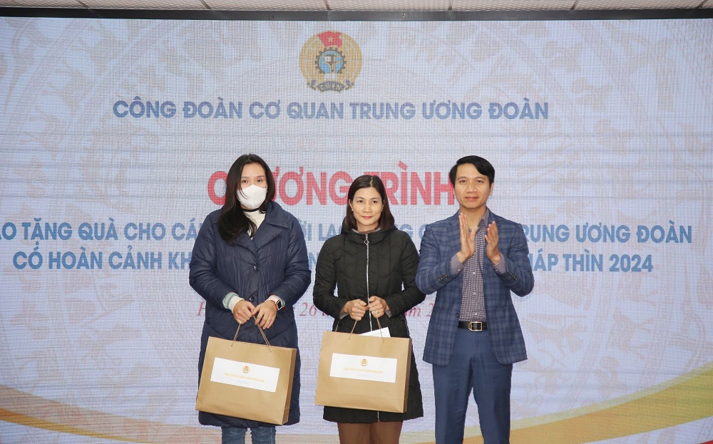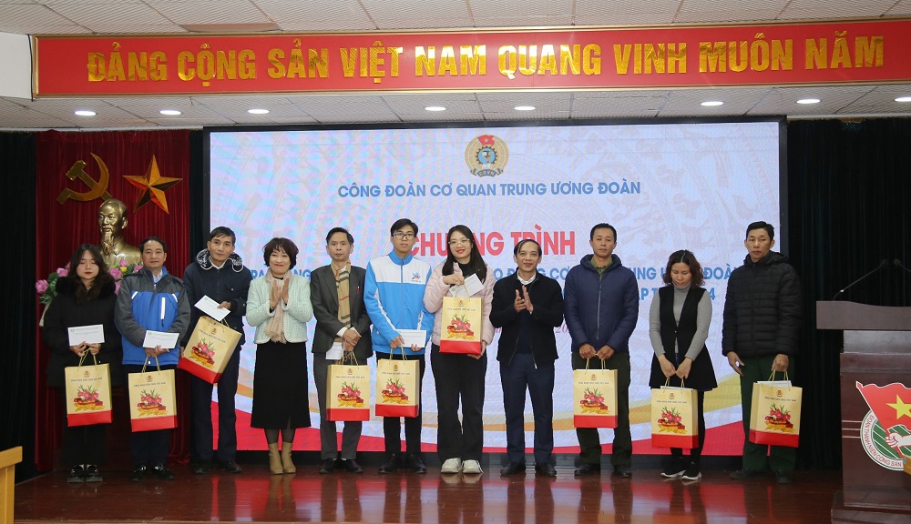 Dịp này, Ban thường vụ Công đoàn cơ quan T.Ư Đoàn trao 68 suất quà cho cán bộ, người lao động có hoàn cảnh khó khăn, trong đó có 22 suất được trao tại chương trình, gồm 11 suất quà của Công đoàn Viên chức Việt Nam và 11 suất quà của Công đoàn cơ quan Trung ương Đoàn (mỗi suất gồm 1 triệu đồng tiền mặt và 01 túi quà trị giá 300.000 đồng).