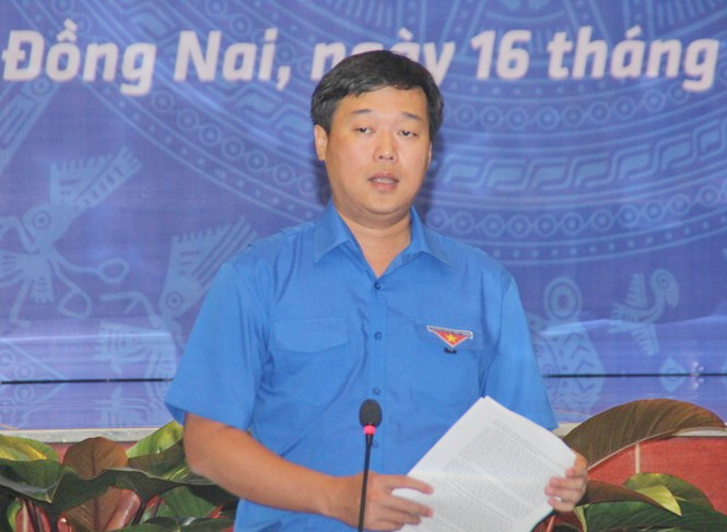 Bí thư Tỉnh Đoàn Đồng Nai Nguyễn Cao Cường nêu ý kiến tại hội nghị