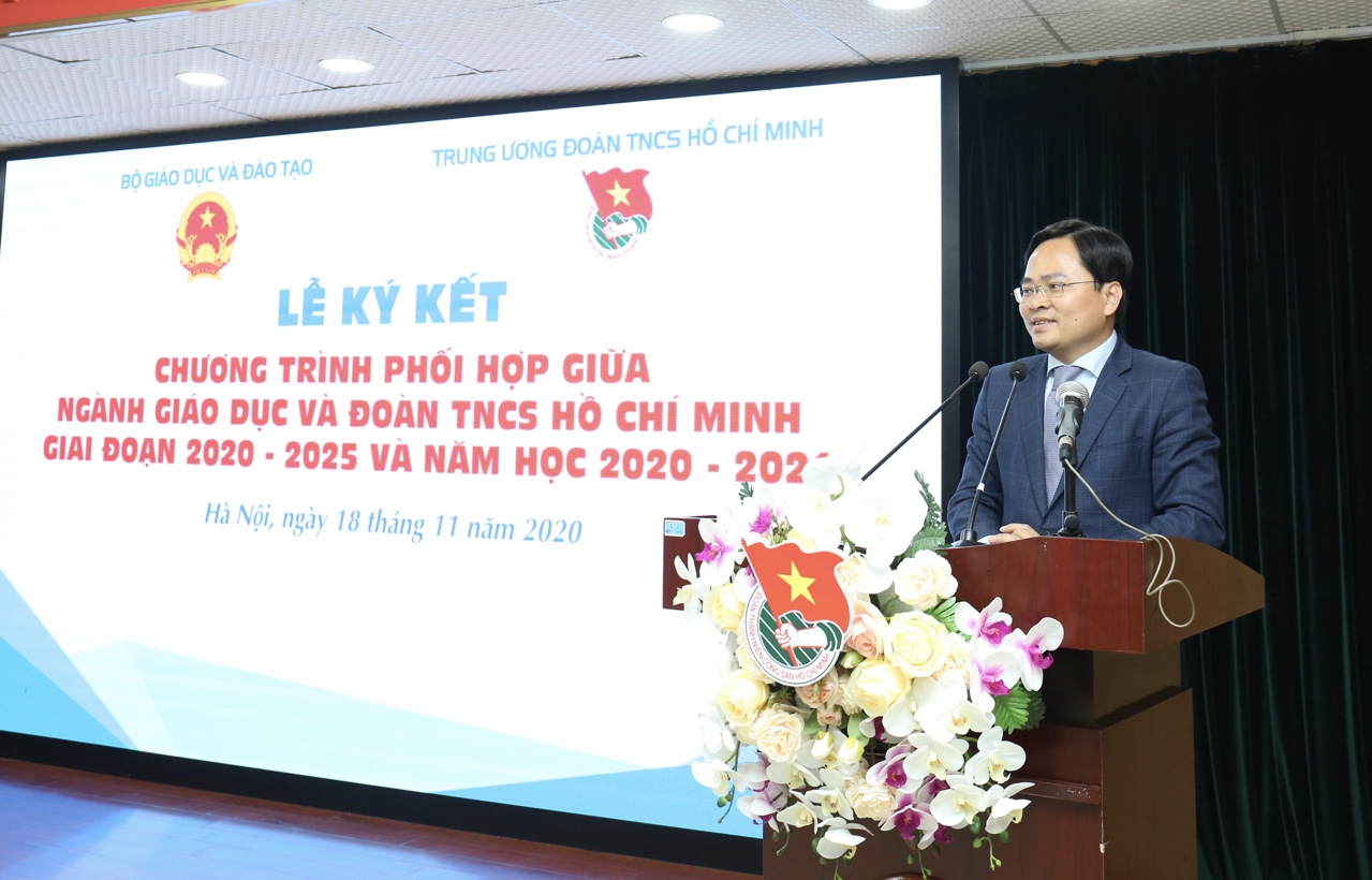 Phát biểu tại buổi lễ, đồng chí Nguyễn Anh Tuấn, Bí thư thứ nhất TƯ Đoàn cho rằng, thời gian qua, 2 đơn vị luôn có sự đồng lòng, sẻ chia hướng đến một mục tiêu chung là đổi mới căn bản, toàn diện nền giáo dục nước nhà. Đối với những việc khó, việc mới phát sinh của T.Ư Đoàn trong 5 năm qua luôn nhận được sự chia sẻ rất kịp thời của ngành giáo dục.