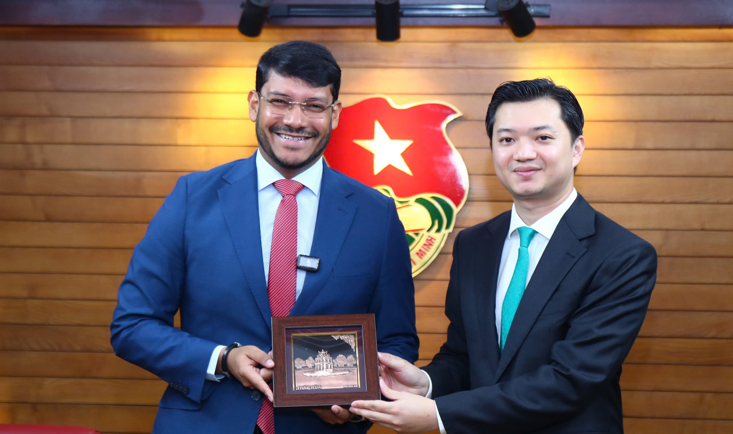 Đồng chí Nguyễn Minh Triết, Bí thư Trung ương Đoàn tặng quà cho đồng chí Ran-đơ Pê-nha, Ủy viên Trung ương Đảng, Phó Chủ tịch phụ trách đối ngoại