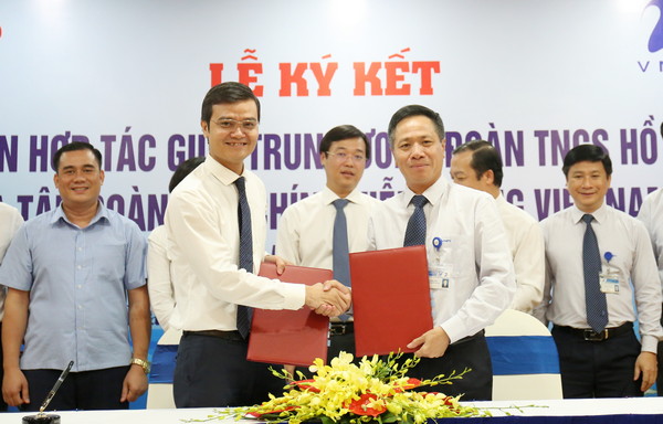 Lãnh đạo hai đơn vị T.Ư Đoàn và Tập đoàn Bưu chính viễn thông Việt Nam (VNPT) ký thỏa thuận hợp tác tại buổi lễ
