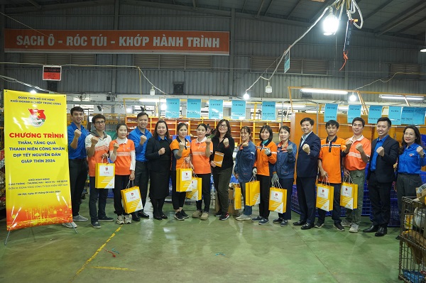 Thực hiện Kế hoạch Tình nguyện mùa đông - Xuân tình nguyện năm 2024, nhằm chăm lo, hỗ trợ đồng hành cùng đoàn viên thanh niên công nhân nhân dịp Tết nguyên đán Giáp Thìn 2024, ngày 01/02/2024, Đoàn Khối Doanh nghiệp Trung ương - Khối hoạt động Giao thông Thương mại Dịch vụ Cơ quan đã tổ chức thăm và tặng quà đoàn viên thanh niên công nhân tiêu biểu, thanh niên có hoàn cảnh khó khăn, đoàn viên thanh niên trực ca kíp tại các đơn vị trong Khối.