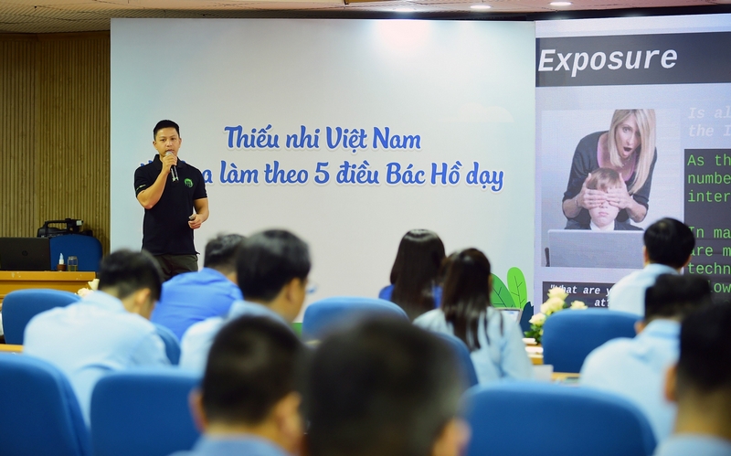 Anh Ngô Minh Hiếu, Chuyên viên giám sát, Trung tâm Giám sát an toàn không gian mạng quốc gia trình bày Chuyên đề “Kỹ năng bảo vệ và hỗ trợ trẻ em tương tác lành mạnh, sáng tạo trên môi trường mạng”