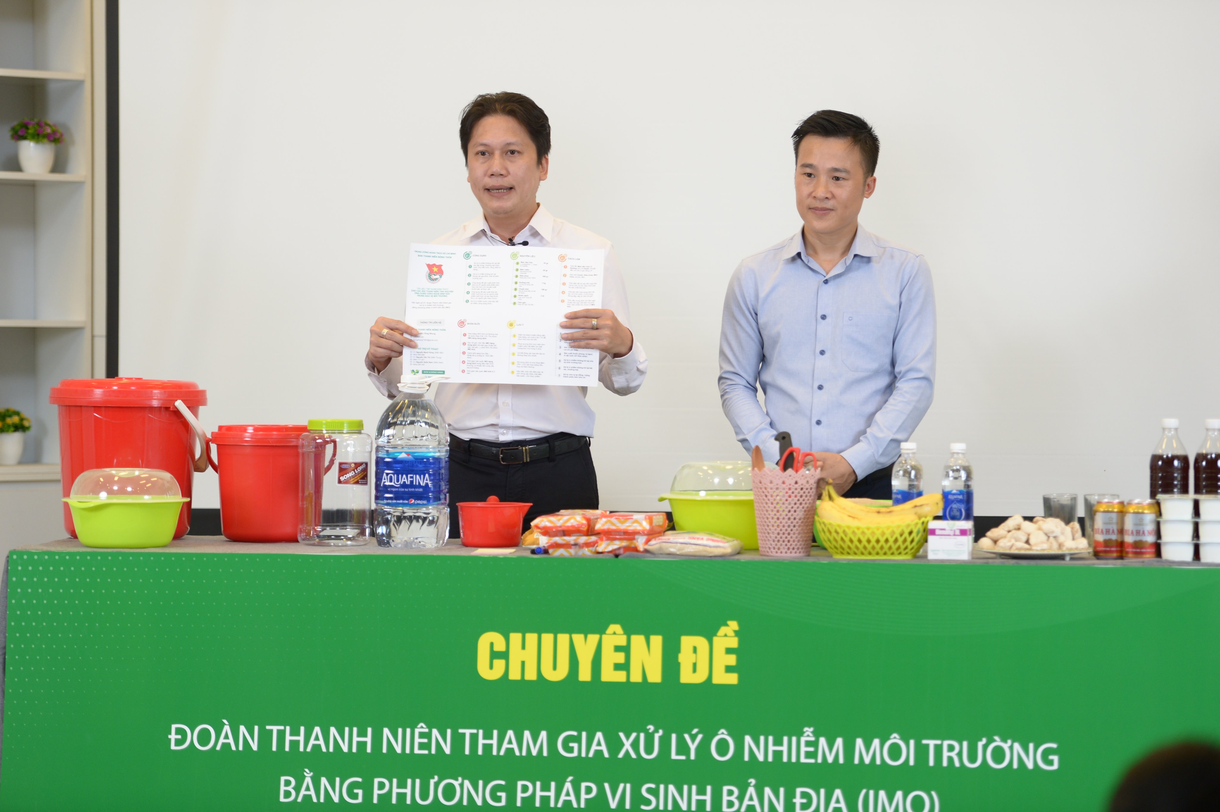 Tại Hội nghị, các đại biểu được nghe đồng chí Nguyễn Thị Thu Vân, Trưởng Ban Thanh niên nông thôn T.Ư Đoàn và Th.s Hoàng Sơn Công, Giám đốc Trung tâm Hỗ trợ khởi nghiệp và chuyển giao công nghệ ngành bán lẻ giới thiệu về chương trình Đoàn Thanh niên tham gia xử lý ô nhiễm môi trường bằng phương pháp vi sinh bản địa (IMO); Hướng dẫn cách thành lập các đội thanh niên tình nguyện ứng dụng công nghệ sinh học trong bảo vệ môi trường; Giới thiệu về phương pháp vi sinh bản địa (IMO) và hướng dẫn sản xuất IMO gốc và Hướng dẫn xây dựng báo cáo thực hành sản xuất IMO của các đội thanh niên tình nguyện ứng dụng công nghệ sinh học trong bảo vệ môi trường.