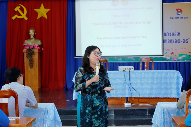 Tại Hội thảo, Ths. Tâm lý học Nguyễn Thiện Mỹ Tâm - Trưởng phòng Khoa học - Thông tin thư viện trường CĐSP Tây Ninh đã chia sẻ về chủ đề “Bạo lực gia đình nhìn từ gốc độ tâm lý”, phân tích các khía cạnh, các loại bạo lực như: thân thể, tinh thần, tình dục, kinh tế…