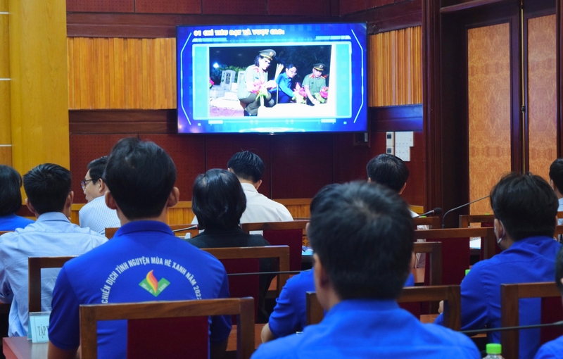 Các đại biểu tham dự Hội nghị xem phóng sự tổng kết Chiến dịch Thanh niên tình nguyện hè 2022