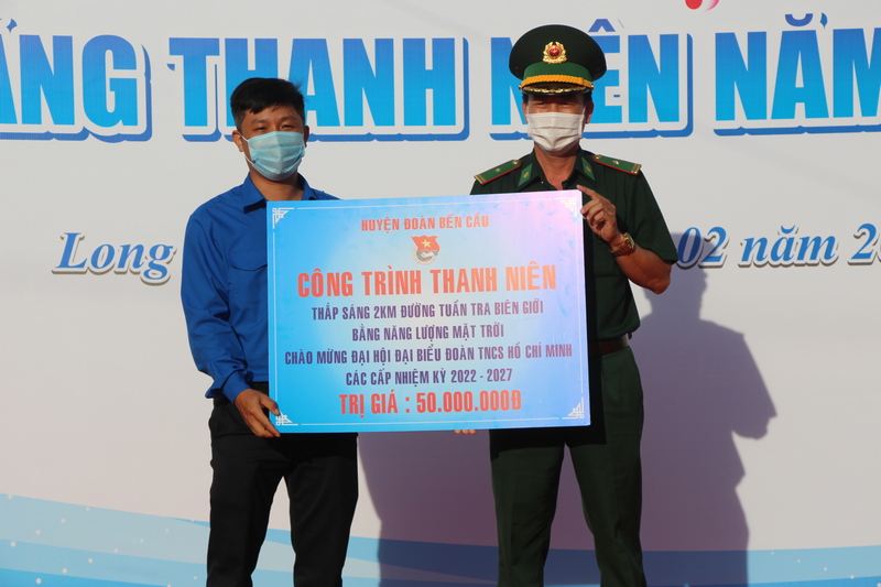 Trao tặng công trình Thắp sáng đường tuần tra biên giới cho đại diện Huyện đoàn Bến Cầu