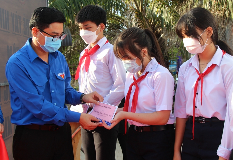 Đồng chí Nguyễn Thanh Tùng - Bí Thư Tỉnh đoàn trao học bổng Thắp sáng ước mơ cho các em học sinh