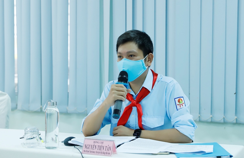 Anh Nguyễn Tiến Tân - Phó Bí thư Tỉnh đoàn, Chủ tịch Hội đồng Đội tỉnh phát biểu tại Hội nghị