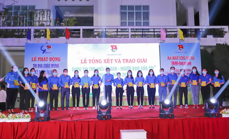 Anh Nguyễn Tiến Tân, Phó Bí thư Tỉnh đoàn Tây Ninh trao thưởng cho các cá nhân đạt giải trong cuộc thi “Sách – Người bạn của tôi” mùa 3.